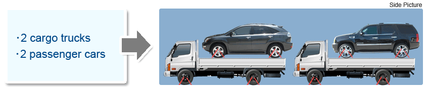 Container shipping is safe method used to load vehicles and other products before shipping by an ocean vessel. It is often used for car shipping when the Ro/Ro and Bulk vessel are unavailable. Schedules are weekly or biweekly and calling ports are widely spread worldwide. In container shipping, the freight cost varies according to the number of vehicles loaded into the container. Therefore, the efficiency of container loading is a priority in order to minimize the shipping cost. Please refer to the following illustrations for how several cars may be packed into one container.