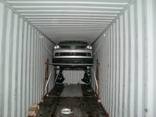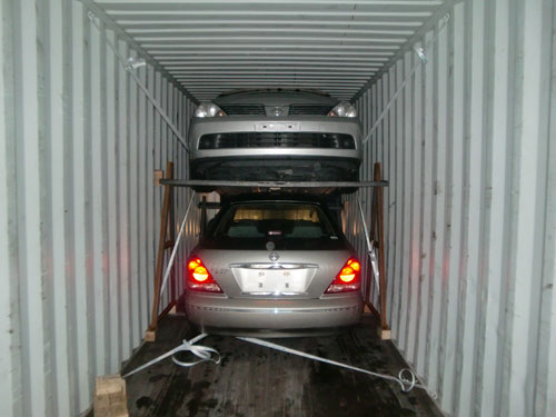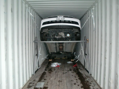 鋼材を使用した数種類の専用アングルに車両を固定致します。